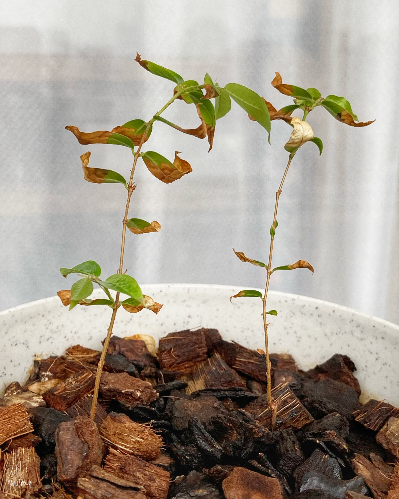 この2本はこのまま育つなら,根が絡まないうちに別々の鉢に植え替えてあげるべきなのだろうか。もうしばらくこのままで良い気がするが。